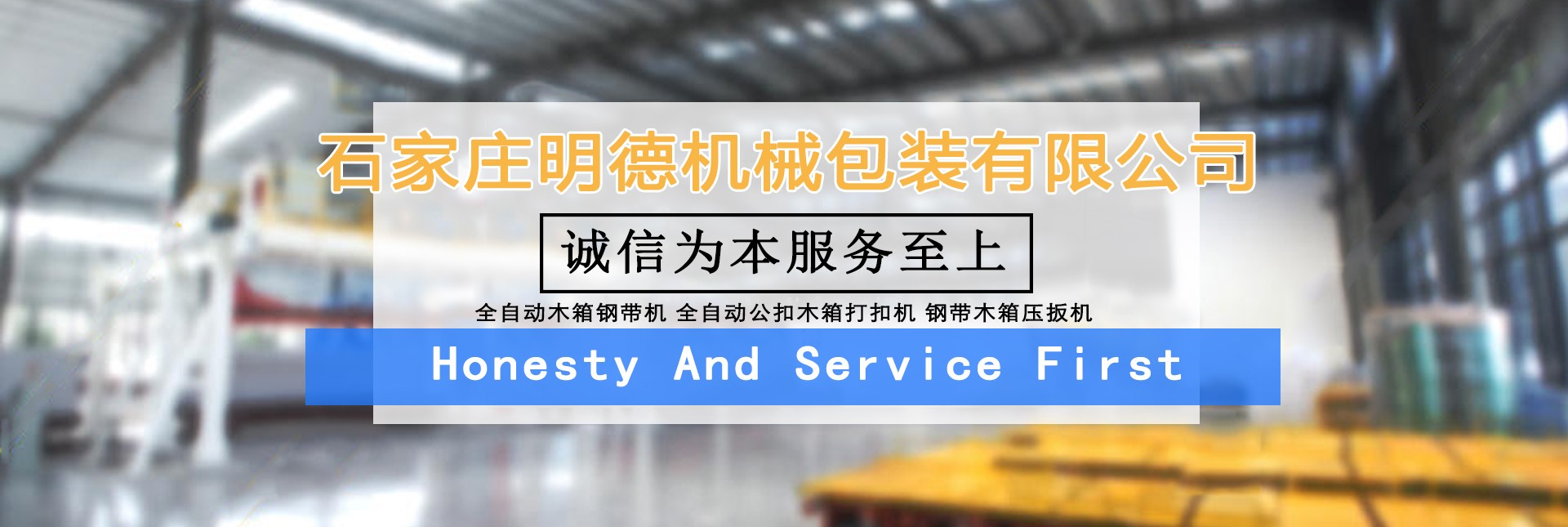 公司目前擁有廠房3000多平方米,自動化生產(chǎn)設(shè)備數(shù)十套。是國內(nèi)專業(yè)生產(chǎn)木箱雙條鋼帶機(jī)、美式托盤打釘機(jī)械、托盤刨槽機(jī)、倒角機(jī)、木包裝箱、木托盤的生產(chǎn)廠家。